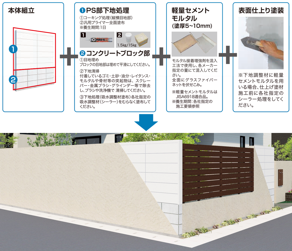 四国化成建材社「パレットHG」・「パレットクリームHG」、アイカ工業社「ジョリパットアルファ(JP-100)」をご使用ください。