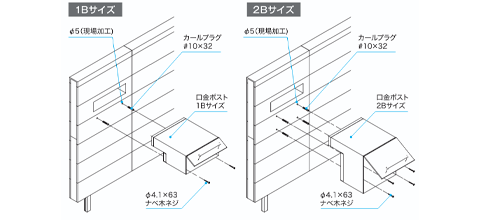 ブロックオンウォールのポストは、「口金ポスト(埋め込みタイプ)」と「壁付けポスト」の2種類の取付ができます。