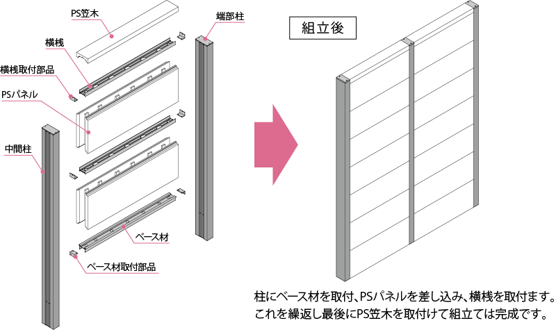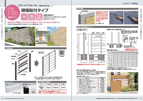 スマート F-ウォール現場貼付タイプ 重量制限範囲内でお好きな「タイル」「石材」「ボード」などを貼付けるタイプです。 最大貼付け重量はH2400以下の場合、75㎏/㎡まで貼付け可能です。 (H2700:50㎏/㎡までとなります) 本体構成部品 パネル・笠木 パネル 笠木・柱キャップ ▼ 詳細はPDFファイルでご覧ください。