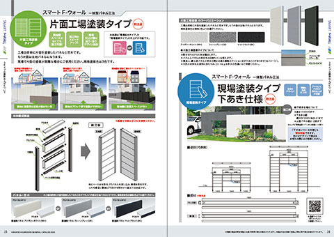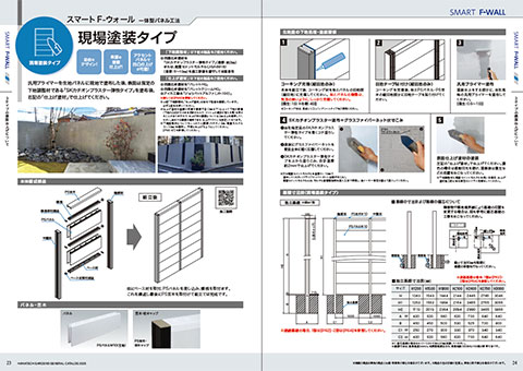 スマート F-ウォール現場塗装タイプ 汎用プライマーを生地パネルに現地で塗布した後、表面は指定の下地調整材である「SKカチオンプラスター弾性タイプ」を塗布後、下記の「仕上げ塗材」で仕上げてください。 四国化成建材社「パレットHG」・「パレットクリームHG」、アイカ工業社「ジョリパットアルファ(JP-100)」をご使用ください。 本体構成部品 パネル・笠木 パネル 笠木・柱キャップ ▼ 詳細はPDFファイルでご覧ください。