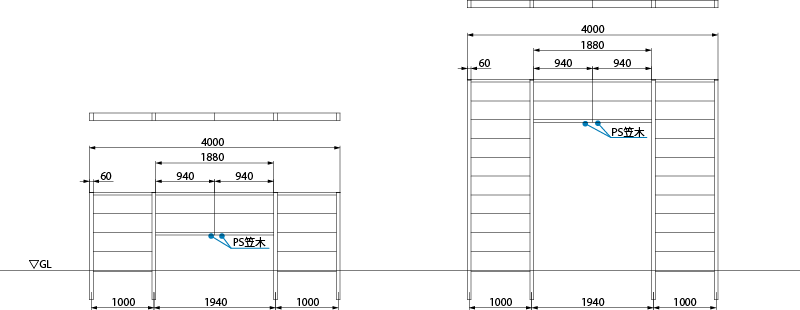 スマート F-ウォール現場塗装タイプ 下あき仕様 下あき仕様について 高さ:H3000まで 下あきの幅:最大W1880(柱内々)まで 上部パネル部分:2段まで ※仕上げは「現場塗装タイプ」(または軽量シート張り) 下があいている仕様も特注対応できます。 いろいろなデザインで演出をお考えの際にはご相談ください。 姿図(代表例) 部材 ※特注となります。 ▼ 詳細はPDFファイルでご覧ください。