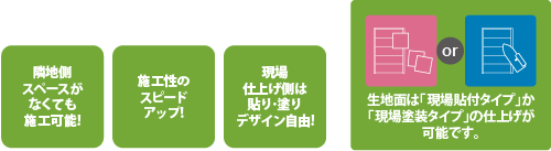 スマート F-ウォール片面工場塗装タイプ 工場出荷時に片面を塗装したパネルと笠木です。もう片面は生地パネルになります。 現場で片面の塗装が困難な場合にご使用ください。 規格塗装色は3色です。 本体構成部品 パネル・笠木 ▼ 詳細はPDFファイルでご覧ください。